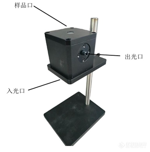反射率积分球由PTFE材料发泡制成,可涵盖紫外到近红外光谱的范围,积分球在光谱区间内具有较高的反射率、出色的耐热性和化学稳定性,极少出现发黄和掉粉的情况。该球体采用氧化铝材料,其内胆直径达到38mm,样品口直径为9.5mm,同时还配备了一个固定支架,以便于来测试操作。该反射率积分球设有三个开口,其一为入光口,用于连接光源,入光口前端配置有准直镜,与法线°入射;其二为出光口,垂直于法线输出,用以连接光谱仪,进出光口均为通用的SMA905光纤接口;其三为样品口,用于放置样品测试。